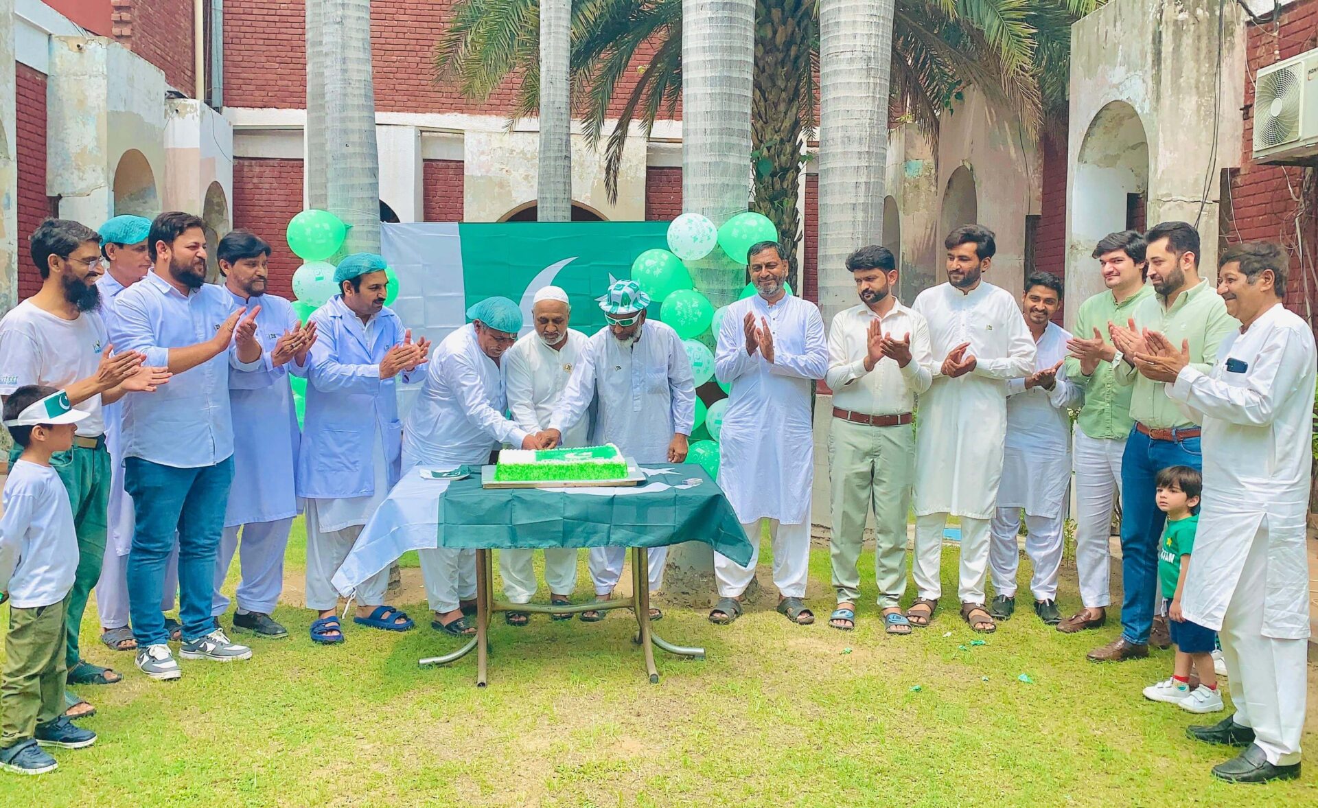 Team of Dawakhana Hakim Ajmal Khan (Pvt) Ltd celebrating 14th August Independence Day with cake cutting ceremony at office.